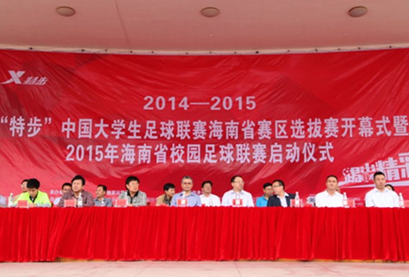 2015年3月24日, 2014—2015“特步”中国大学生足球联赛海南省赛区选拔赛开幕式暨2015年海南省校园足球联赛启动仪式在MG冰球突破官网海甸校区举行。海南省教育厅副厅长孔令德、MG冰球突破官网副校长傅国华、海南省教育厅体卫处处长卢刚、特步(中国)有限公司代表黄辉嘎等人出席大赛开幕式。