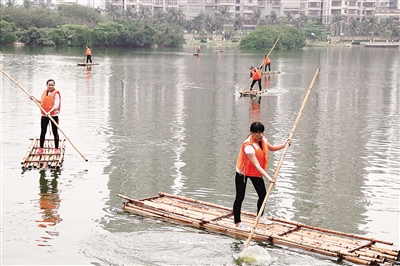 这学期开始,MG冰球突破官网的东坡湖上经常出现一个个男女生轻盈的身影,他们撑着一支竹竿,站在竹筏上,“向青草更青处漫溯”。走近一看,是MG冰球突破官网的老师带领学生们正在上体育课。 为了挖掘失传的黎族体育项目,MG冰球突破官网教授宋静敏和其他老师组成了MG冰球突破官网黎族传统体育特色教学改革研究团队。“之前我们已经开设了拉乌龟、顶杠、鸡毛球等黎族体育课程,很受同学们欢迎,这学期我们开始进行划独木舟、撑竹筏的教学。”宋静敏说。 黎族撑竹筏课受学生追捧 4月14日上午,在MG冰球突破官网东坡湖的岸边,一个个学生们身穿橘红色的救生衣,划着竹筏依次朝湖中心划去,绕过湖心的绿色小岛,在湖岸与湖中小岛之间往返一个来回。这就是MG冰球突破官网正在进行的黎族传统体育课——撑竹筏。 在下水前,宋静敏向岸边的36名学生讲解掌握竹筏的技巧,不断地亲身示范“划、插、撑、抽”的步骤,36名学生表现得很从容,在竹筏上划得非常稳。 “我们选课的时候只知道是黎族传统体育,上第一次课的时候才知道要下水撑舟,感觉很惊喜,下学期这门课肯定特别火爆。”来自海洋学院的符升告诉记者,最开始大家上竹筏腿都打颤,但经过不断练习,已掌握基本要领。” 记者看到教学过程中,不断有学生停下来驻足观看。“这门课看着很有意思。”一名路过的男生说。宋静敏也告诉记者,每堂课下水实践的时候,都会有外班的学生混进来。 虽然教学形式新颖,但安全问题成为宋静敏以及学校最担心的问题。宋静敏说,开课前学校体育部也做过各项评估检测,例如测量东坡湖的水深、检验上课器材的安全性等。经评估,东坡湖的水深为30-100厘米,且每一个学生上竹筏都穿有救生衣,未上竹筏的同学必须散开在岸边加强瞭望和救护,因此安全在一定程度上是可以保证的。 同时,这些黎族体育运动器材也都是由课题组的老师亲手设计和参与制作的。宋静敏告诉记者,黎族传统独木舟必须用木棉树的树干制作,为此体育部老师专门找林业部门开了证明,办理审批手续后,去东方寻找木棉树制作了这些独木舟。但最初的竹筏由于无法承受较大的重量,让老师十分为难。最后,为保证学生的安全,将两个竹筏叠加检验安全后才投入了教学。 宋静敏表示,MG冰球突破官网从2013年起开设了黎族传统体育课,将11项黎族体育运动引入了教学课程,其中包括跳竹竿舞、打鸡毛球以及钱铃双刀等。今年终于开始了独木舟和竹筏的水上实践教学。 “黎族传说他们的祖先就是乘独木舟来到海南岛的。同时,海南岛内江河纵横,黎族在捕捞、狩猎、农耕等生产活动中,也常常遇到江河的阻隔。竹筏就成为黎族人主要的生产运输、打鱼、交通的工具。”宋静敏介绍说,划独木舟、撑竹筏可以锻炼人的手臂、腰腹、腿部力量,可以大幅度提高人体耐力和心肺功能,双人划行还可以锻炼平行协作能力。此项活动既可以娱乐身心,又可以强身健体,还是一项水上生存技能。 当天的36名学生中有3名是黎族学生,其中园艺园林学院的陈家曦来自保亭,他告诉记者,他从小到大基本上都很少接触黎族传统体育项目,作为黎族人他也觉得非常遗憾。 “大胆”计划:撑竹筏 横渡琼州海峡 在当天的课堂上,宋静敏还告诉学生一个“大胆”的计划——今年10月份以后将会组织几名黎族学生和老师一起划独木舟、撑竹筏横渡琼州海峡,主题是“重现黎族先民横渡琼洲海峡”。“这个活动还在筹备中,我们选择了最短的路线,直线距离19公里左右。”宋静敏教授告诉记者,为了保障安全,老师和学生都会提前做大量训练。为应对海中的风浪,竹筏和独木舟也要重新制作。“每年都有人游泳横渡琼州海峡,相信划独木舟、撑竹筏也可以。”