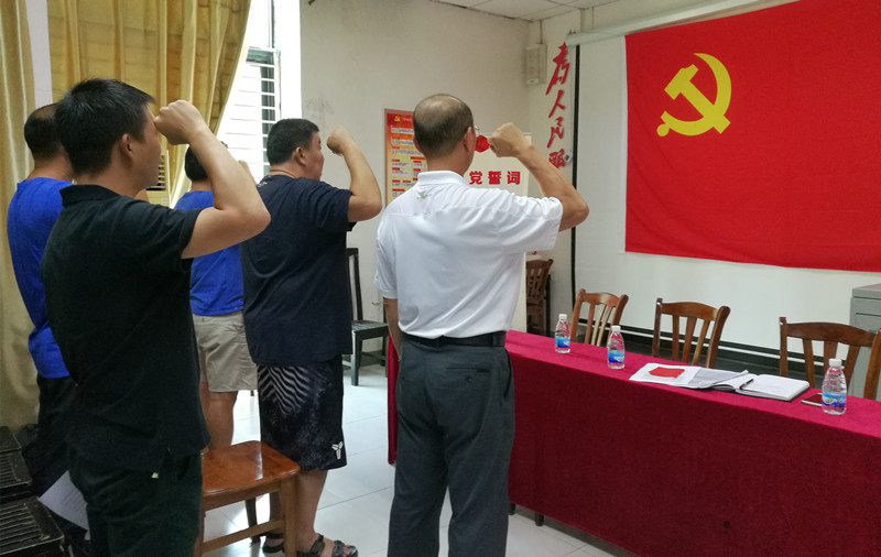 会议第一项由陈泰豪书记带领全体党员重温入党誓词。大家举起右拳,面向党旗,庄严进行了宣誓,又一次接受了洗礼。通过重温入党誓词,加强党员的革命传统教育,提高党员的党性修养,使党员牢记自己曾经宣誓的责任和义务,不忘初心,继续前进。