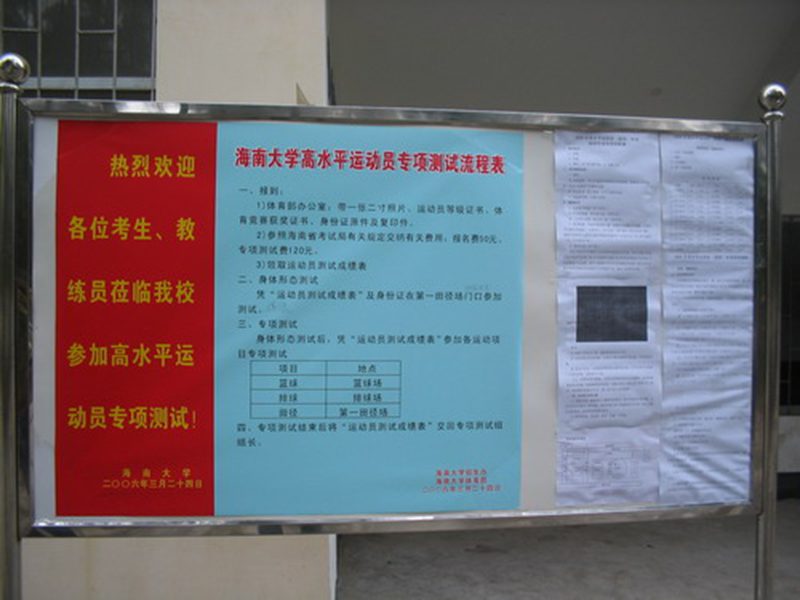 经教育部批准,MG冰球官网将从今年起在田径、篮球、排球等运动项目上面向全国招收高水平运动员,为确保2006年高水平运动员招生工作公开、公平,学校成立了以招生、教务、纪检、监察、体育部等相关部门组成的“工作领导小组”,组成“专项测试工作小组”,制订《MG冰球突破官网招收高水平运动员实施办法》,并将招生项目及计划、报考条件、招生程序、专项测试内容等在网上向社会公布,严把招生、测试、录取的各个关口,增加透明度,接受社会监督,以确保招生质量。考生可在教育部、生源所在地、MG冰球突破官网招生办网页上查询自己的录取情况。
