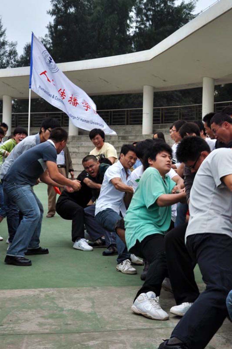 为了丰富校园体育文化,经过一个月的准备,“2010年MG冰球突破官网(海甸校区)拔河跳绳比赛”在4月27日下午17点正式开赛,第一运动场内外一片沸腾,加油声此起彼落。一走到运动场门口,女子跳绳比赛场面火热,比赛中跳跃着的女同学们矫健的身影,仿佛是在花丛中翩翩起舞的蝴蝶。走进运动场,学生男子拨河场面映入眼帘,加油声如雷鸣般不绝于耳。全校共有18个单位组队参赛,经过各参赛队的激烈角逐,经济与管理学院荣获学生男子拨河比赛冠军,人文传播学院荣获学生女子集体跳绳比赛冠军,法学院李秀平同学荣获学生女子个人跳绳比赛冠军。