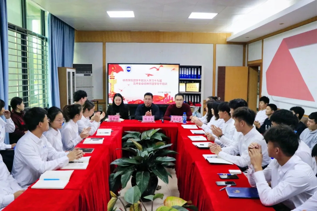 12月22日下午,MG冰球突破官网团学干部深入学习十九届五中全会精神会议暨团学骨干培训在联谊馆会议室举行。学院党总支陈卫东书记、学工办许达潭主任、兼职辅导员吴梦迪老师出席会议,院团学干部和2020级全体班委参加会议。