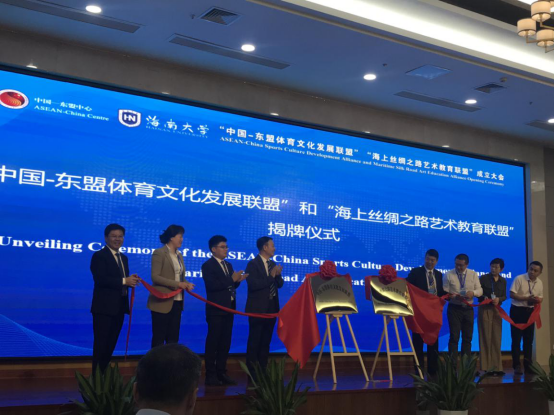 会上,武耀廷与梁谋、廖民生等嘉宾为“中国-东盟体育文化发展联盟” “海上丝绸之路艺术教育联盟”揭牌,标志着两个联盟正式成立。