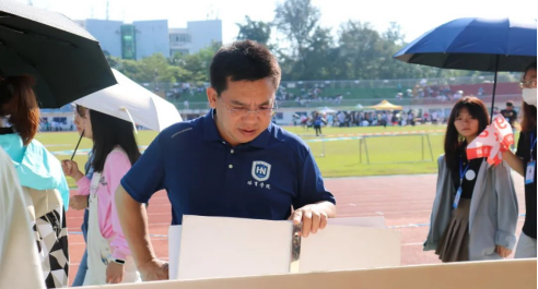 此次运动会上,院党总支书记陈卫东、学工办主任许达潭以及辅导员谢淑婷老师亲临现场慰问运动员,指导学生场外工作。