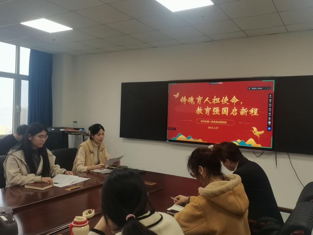 本站讯 为深入学习贯彻党的二十大关于加快建设教育强国的战略部署,2月27日下午,永利皇宫8858官网本科生第一党支部于北衡楼1421开展了“铸魂育人担使命,教育强国启新程”主题党日活动。会议由党支部书记王祎璠主持,支部全体党员参加。