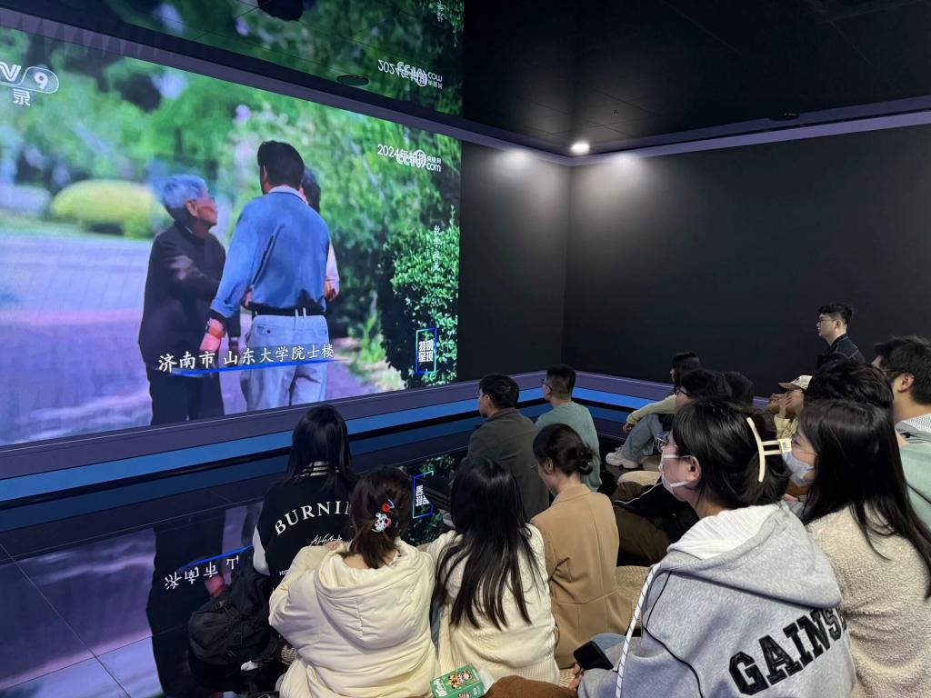 活动第一阶段,支部成员在五四广场参观了“数智万象,创享无界”数学文化智汇展。党员们与现场同学深入交流,共同探讨AI技术在数学领域的创新应用与发展前景,感受科技与数学融合的魅力。随后,学生党员前往图书馆沉浸式空间,全体党员集中观看了国家安全教育专题片和《数学之美》潘承洞纪录片。通过纪录片学习,党员们深刻体会到数学家潜心科研、勇攀高峰的学术精神,以及数学学科在国家科技发展中的重要作用。观影结束后,支部成员围绕“新时代青年如何将个人发展与国家需求相结合”展开热烈讨论,互相分享学习心得。