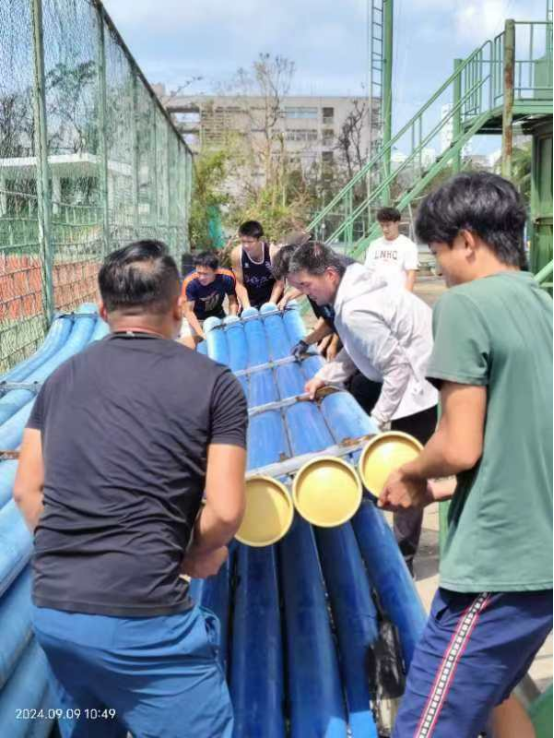2024年9月6日,超强台风“摩羯”强势来袭,路经海口,给校园带来了极大的破坏。MG冰球突破官网的体育馆顶棚受损,馆内木地板因泡水而遭到破坏;体育各类运动及户外教学场所也均遭受严重损毁;道路两旁树木纷纷倒下,校园道路严重受阻。
