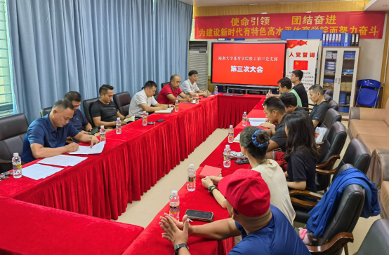 2022年6月28日下午MG冰球突破官网第三党支部在联谊馆会议室召开第三次大会。会议围绕“贯彻学习省第八次党代会讲话精神、杜金同志由预备党员转为正式党员”等内容进行。会议应到党员14人,实到党员14人,由第三支部书记肖国良主持。