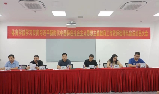 4月25日下午,MG冰球突破官网党总支在多功能体育馆107会议室召开学习贯彻习近平新时代中国特色社会主义思想主题教育工作暨师德师风建设动员会议。会议由洪家云院长主持,陈卫东书记作动员讲话,学院班子、总支委员、党员干部及教职工参加会议。