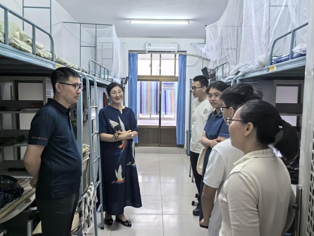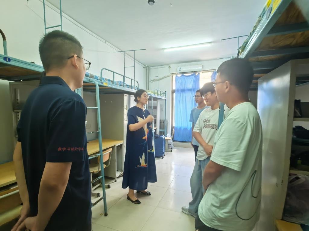 用心关怀,传递温暖,促进师生情感交流。9月3日上午,学院党委副书记王鹏飞带领全体辅导员走访学生宿舍,亲切慰问2024级新生。交流过程中,王鹏飞鼓励同学们珍惜大学时光,努力提升自我,以饱满的热情和坚定的信念迎接人生新阶段的挑战。同时,她提醒同学们严格遵守公寓管理规定,注意用电安全,保持寝室卫生,与室友融洽相处,共同创造安全和谐的宿舍氛围。通过深入交流,新生们感受到学院的亲切关怀和殷切期望,纷纷表示将尽快适应大学环境,确立具体目标,用实际行动书写大学的精彩篇章。