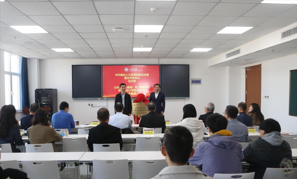 于振涛和肖忠野共同为科学计算与大数据暨“曙光”先进计算菁英班揭牌。仪式公布了精英班班主任、学业导师及行业导师名单,教务处处长王湘云为学业导师和行业导师代表颁发聘书。