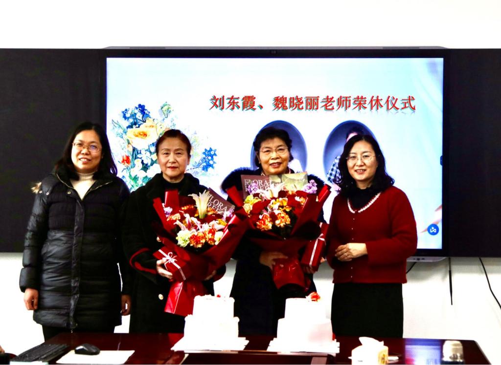 王鹏飞代表学院回顾了刘东霞、魏晓丽两位老师在管理岗位、教学岗位上的贡献和成绩,鼓励全体女教职工以两位老师为榜样,在管理服务岗位上爱岗敬业、用心服务师生,在教学科研岗位上深耕投入,潜心教书育人。学院副院长亓兴勤、孙庆峰为两位老师送上鲜花,表达了学院的祝福。两位老师分别发言,表达了自己对学院的感激和眷恋,为自己能够见证学院的发展,贡献自己的青春力量感到欣慰和自豪。