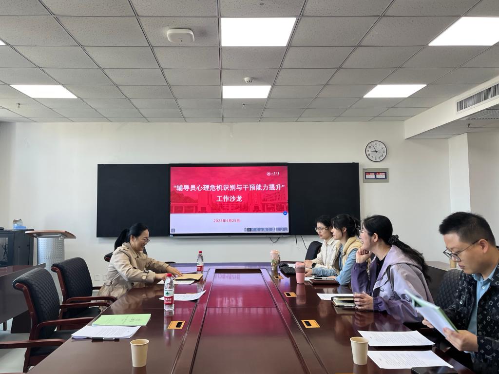 本站讯 为进一步提升辅导员队伍心理育人能力,强化学生心理危机预防与干预的专业化水平,4月25日上午,永利皇宫8858官网于北衡楼1421会议室举办“辅导员心理危机识别与干预能力提升”工作沙龙。校区心理指导中心主任李海静受邀分享交流。