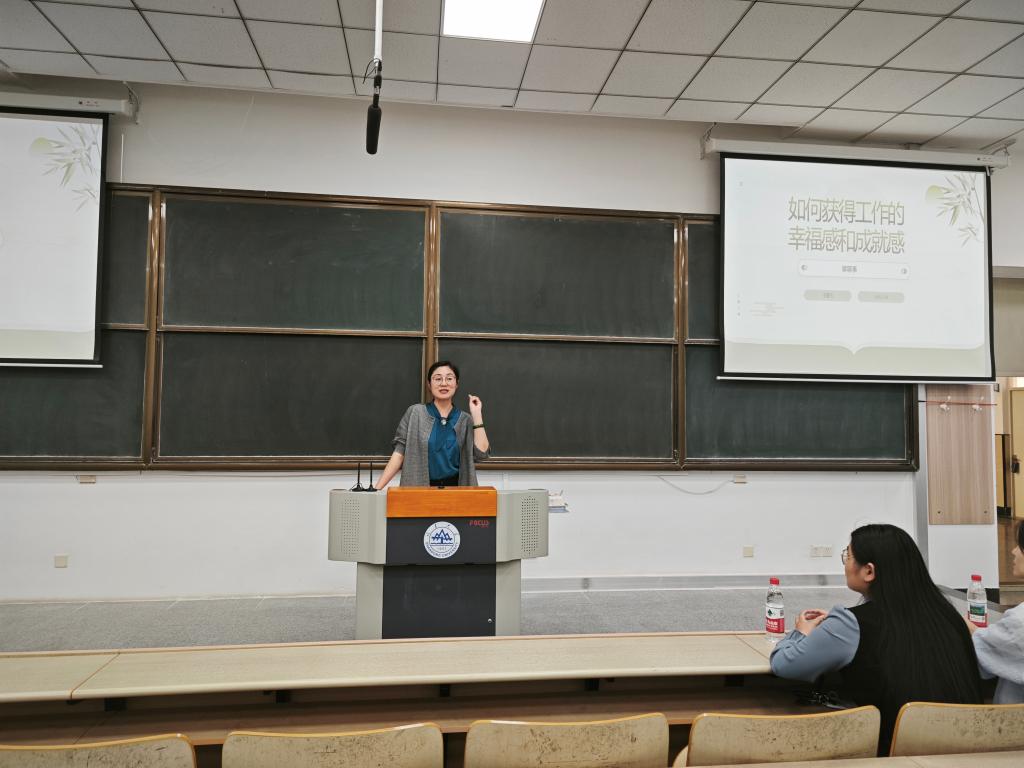 王鹏飞以“如何获得工作的幸福感与成就感”为题,从学生干部工作出发点、工作内容、工作方法、工作困惑四个角度阐述如何做好学生工作。她结合马斯洛需求层次理论,从功利心、成长心与服务心三个层次深入阐述了学生干部如何在工作中找到价值与意义。从学生干部群体职责、分管工作职责、学生身份职责三个层面梳理了学生干部的作用发挥,从宿舍长、班委、学生会三个维度引导学生充分认识工作的内容和聚焦重点。她指出学生干部工作的四种状态,强调对于工作中不作为、打折扣的行为要坚决杜绝,鼓励大家不要局限于简单执行,更应该主动思考,结合工作要求学会谋划、有的放矢、重点推进。王鹏飞也梳理了学生干部工作中常见困惑和问题,希望大家能提出问题并加强沟通交流,通过相互学习,促进共同成长。