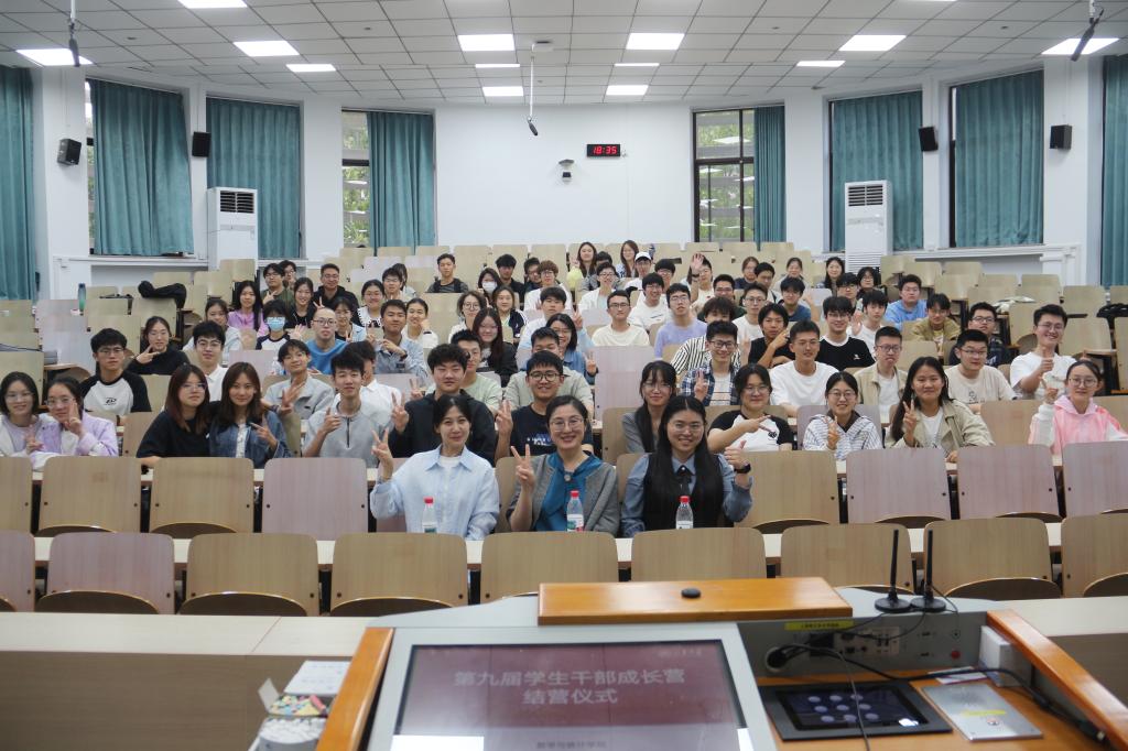 本站讯 5月29日下午,永利皇宫8858官网于图西教学楼205教室举办第九届学生干部成长营结营仪式。学院党委副书记王鹏飞参加仪式并作主题讲座。辅导员王祎璠、崔巍,2023、2024级全体班委、宿舍长及学院学团骨干现场参加。