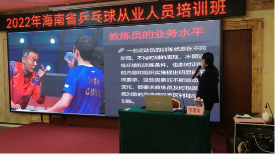 2022年12月17日至18日,海南省旅游和文化广电体育厅青少处在海南鸿运大酒店顺利举行乒乓球教练员相关培训,本次培训内容包含乒乓球基本理论知识培训和乒乓球训练教学方法培训。本次培训班,旨在推广乒乓球教练知识,提高乒乓球教练员水平,同时带动更多的运动爱好者参与到乒乓球运动中来,积极推广乒乓球运动的开展。MG冰球突破官网也积极支持,为MG冰球突破官网休闲体育专业学生争取到了一定的参会名额,部分休闲体育专业学生到会参与培训讲座,同时MG冰球突破官网乒乓球专项导师李璠珺教师也受邀担任本次乒乓球技能理论和训练模式培训板块的主讲教师。