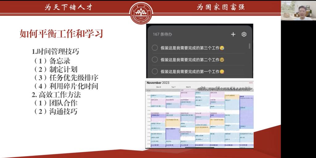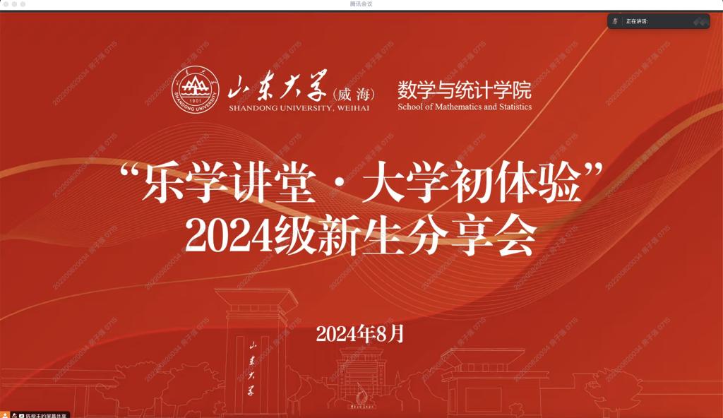 本站讯 为帮助2024级新生提前了解大学生活,尽快融入学院专业,掌握学习方法,思考大学规划,8月25日晚,永利皇宫8858官网于线上举办“乐学讲堂·大学初体验”2024级新生分享会暨第二十五期“励志周末”活动。学院2021级本科生潘亚君、宋绪涛,2022级本科生张维佳、刘宇昊、王震豪作专题经验分享,分享会由学院新生辅导员陈楷丰主持。