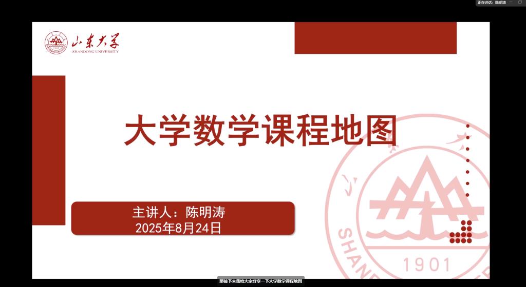 本站讯 8月24日晚19:00,永利皇宫8858官网以线上形式举办“乐学讲堂——大学初体验”2025级新生适应性讲座。本次活动旨在帮助新生提前了解大学学习与生活,明确发展方向,为顺利开启大学生活做好充分准备。讲座邀请永利皇宫8858官网数学与应用数学系主任、副教授陈明涛,以及2023级学生代表黄敏、马晓宁、李瑞洲作为分享嘉宾。2025级全体新生在线参与。